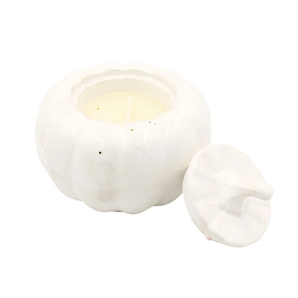 - Δοχείο Πορσελάνης σε Σχήμα Κολοκύθας: Το κερί βρίσκεται σε ένα γοητευτικό δοχείο από υψηλής ποιότητας πορσελάνη, σχεδιασμένο στο κλασικό, ανάγλυφο σχήμα κολοκύθας. Το φυσικό λευκό/κρεμ χρώμα και το διακριτικό γυαλιστερό φινίρισμα (με πιθανές μικρές χρυσές πιτσιλιές για έξτρα λάμψη) το καθιστούν ένα διαχρονικό κομμάτι διακόσμησης.